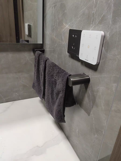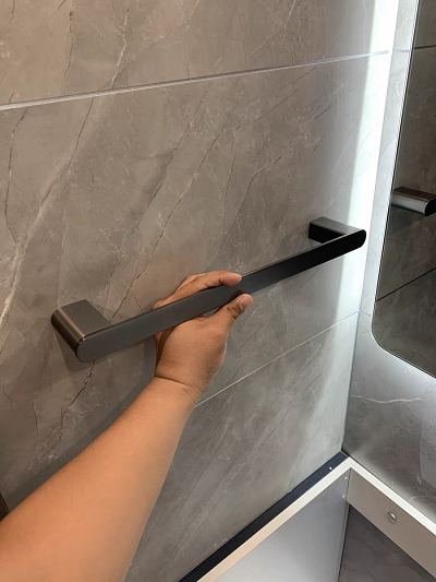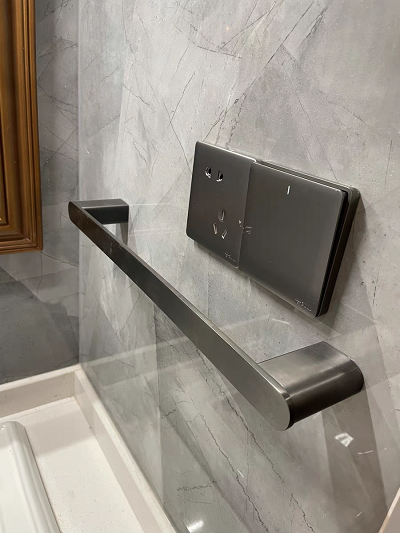 Nằm trong bộ phụ kiện phòng tắm mạ chân không màu ghi sang trọng, cao cấp.