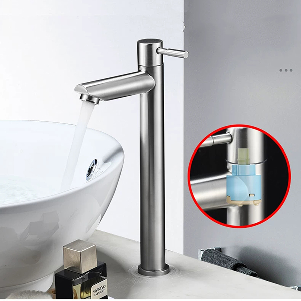 Vì vòi lavabo inox 304 chỉ đánh mịn xước mờ bề mặt chứ không mạ nên không bao giờ có hiện tượng bong tróc, nổ lớp mạ hay thủng thân giống như sen vòi đồng. Đặc biệt inox 304 với thành phần Crom và nikel cao nên khả năng chống gỉ chống ăn mòn rất tốt phù hợp với cả những vùng nước mặn.